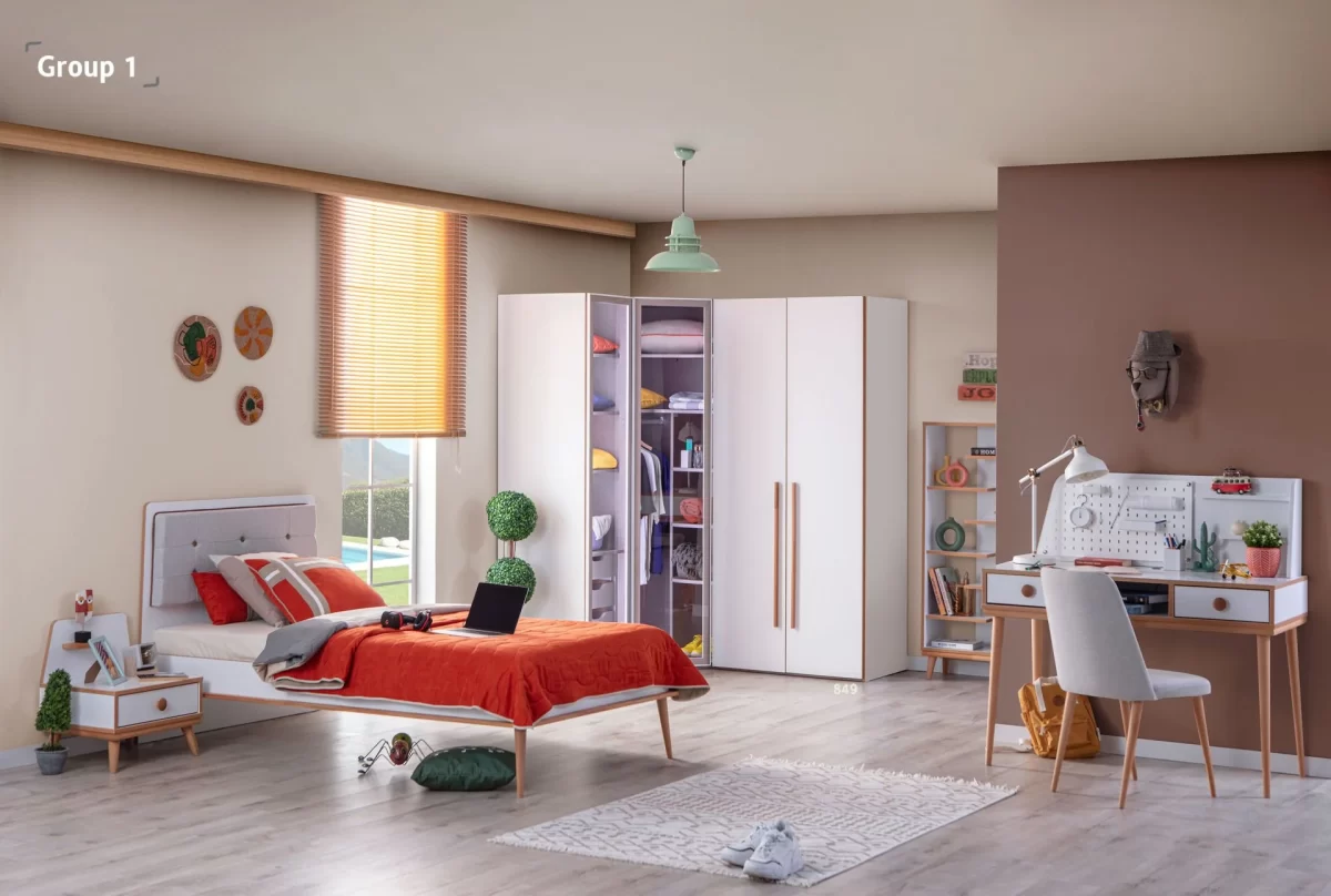 Genç Odaları: Gençlerin kişisel tarzlarını yansıtabilecekleri, modern ve şık tasarımlı yataklar, dolaplar, çalışma masaları ve oturma grupları.