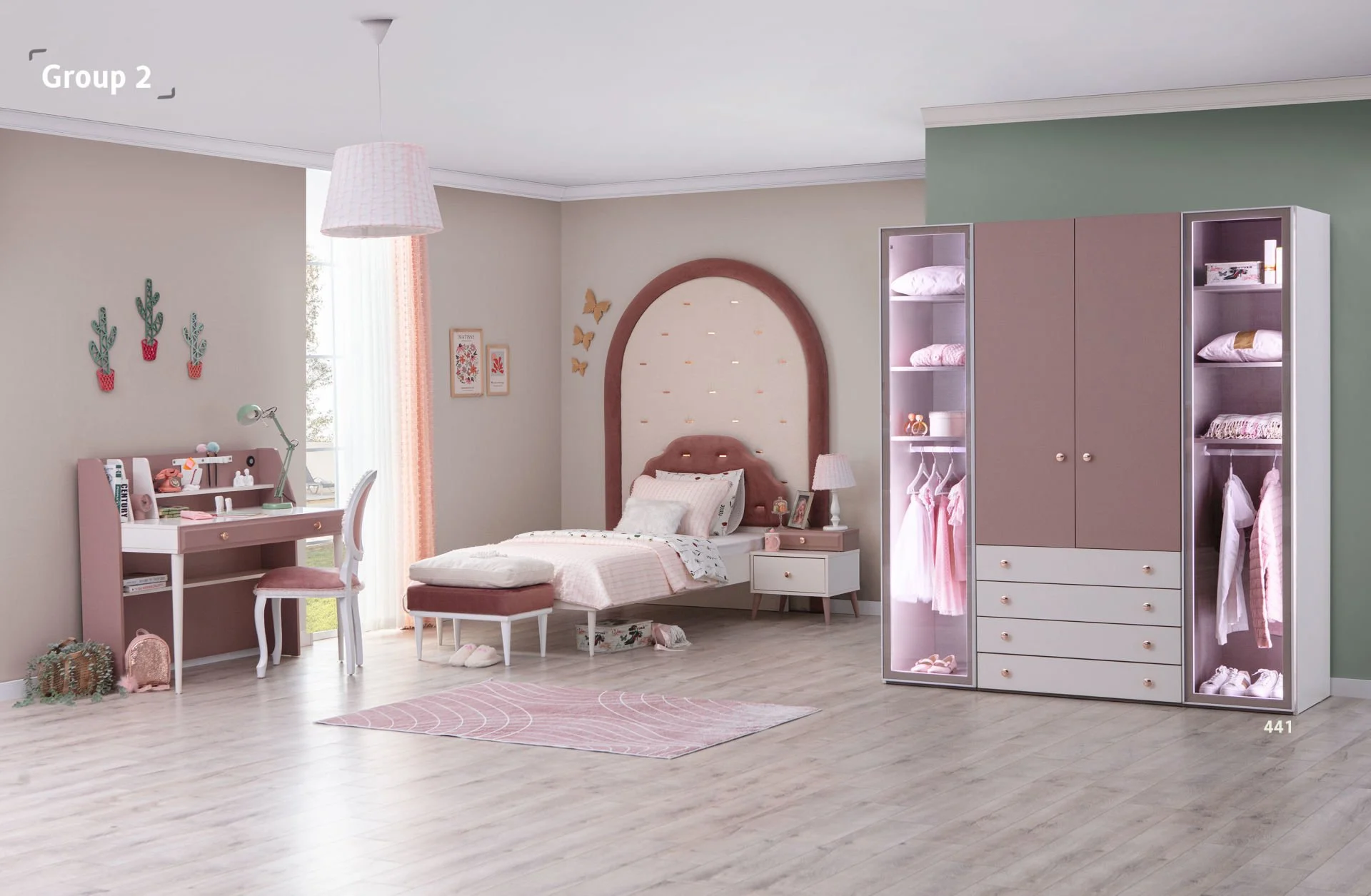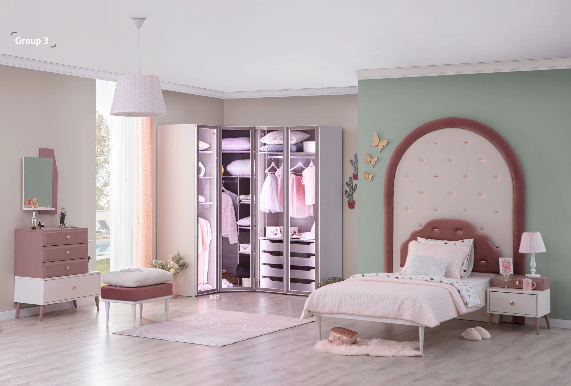 Genç Odaları: Gençlerin kişisel tarzlarını yansıtabilecekleri, modern ve şık tasarımlı yataklar, dolaplar, çalışma masaları ve oturma grupları.